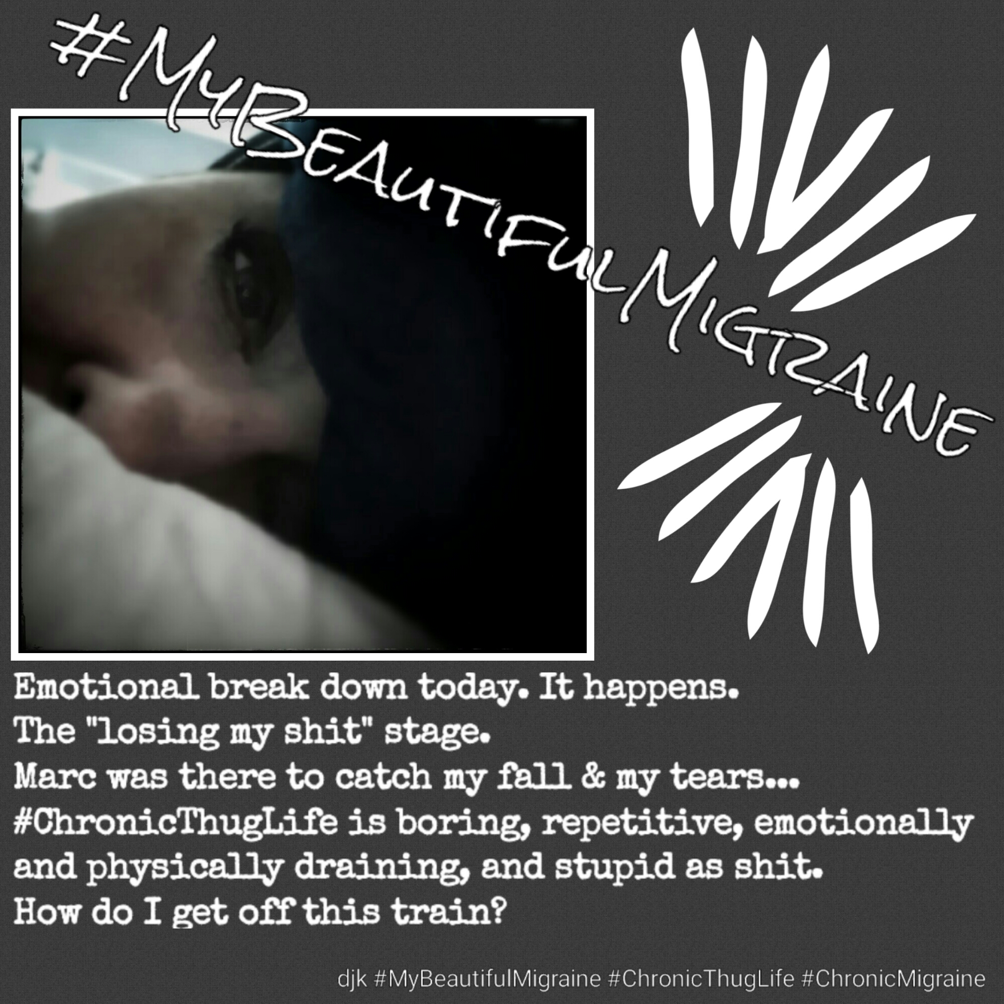 I was traumatized, exhausted and depressed from unrelenting emotional and physical pain.  I just wanted it to end. Those were very difficult times and Migraine was a big part of them. The guilt tore at my conscience every minute of the day. It took a lot of counseling and being on an antidepressant to help get me back on track.