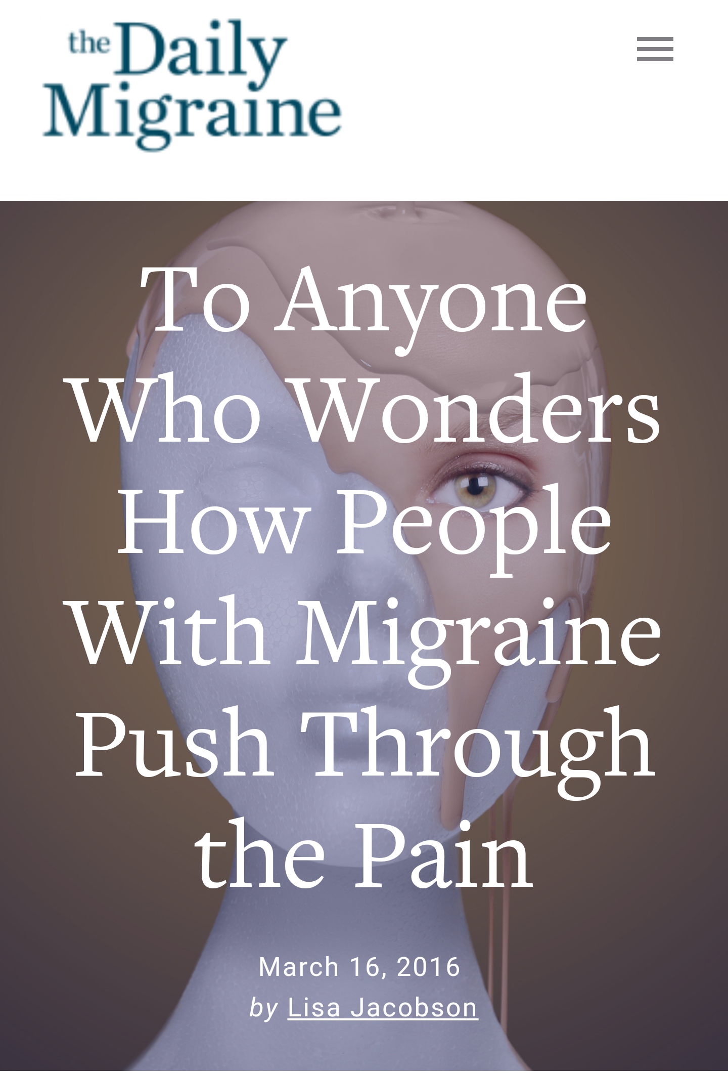 To Anyone Who Wonders How People With Migraine Push Through the Pain by Lisa Jacobson — Founder, The Daily Migraine