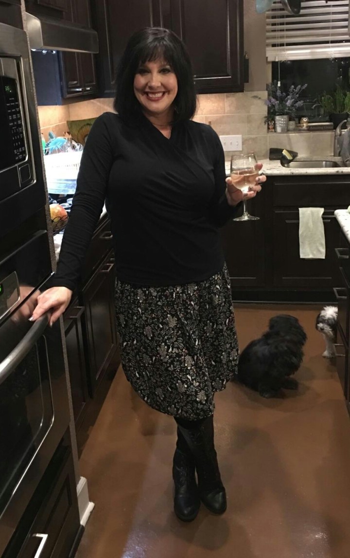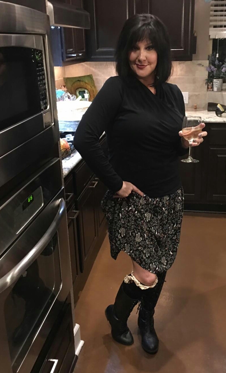 I go out. Greet my guests. Smile, thank everyone, guests arriving faster. Hugs, kisses, conversations. It’s getting warm. Open doors and windows. Laughter. I love my house lit up in party. Everyone looks beautiful. So good to entertain. Our kids visit occasionally – they’re upstairs on their computers, bless them. This is an adult’s only party. Marc and I mingle. We are good at this. I catch his eye every once in awhile. We meet up. We laugh and tell a story. It’s great. House full of merry. But I have no pocket for my lipstick or phone so there’s that. Always makes me uncomfortable. (Lol)