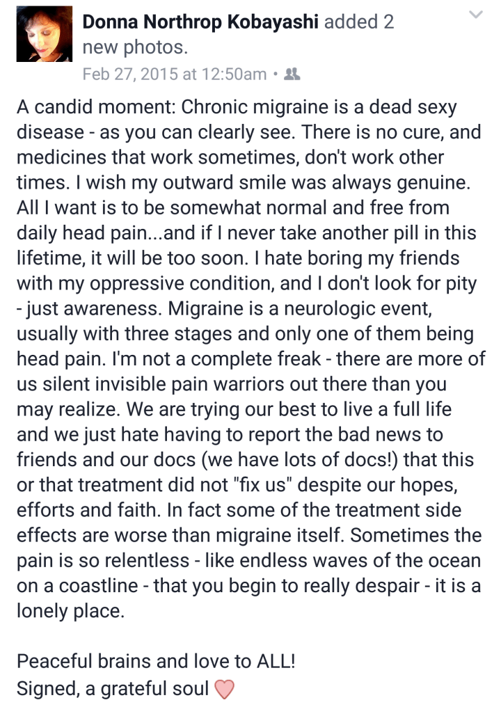 And I’m here. Ball and chain of Pain around my head. Tethered to my home and bed. A burden on my family.