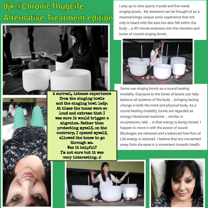 Most interesting was as a relaxed with my eyes closed, I was sure I was hearing pouring rain outside the building when the bowl tones would quiet. At the end of the session I was shocked that it had not rained at all! Those bowls…They seem to create their own sounds. The tones were very loud and intense; my whole body reverberated and hummed. It was difficult for me to remember to breathe at times.