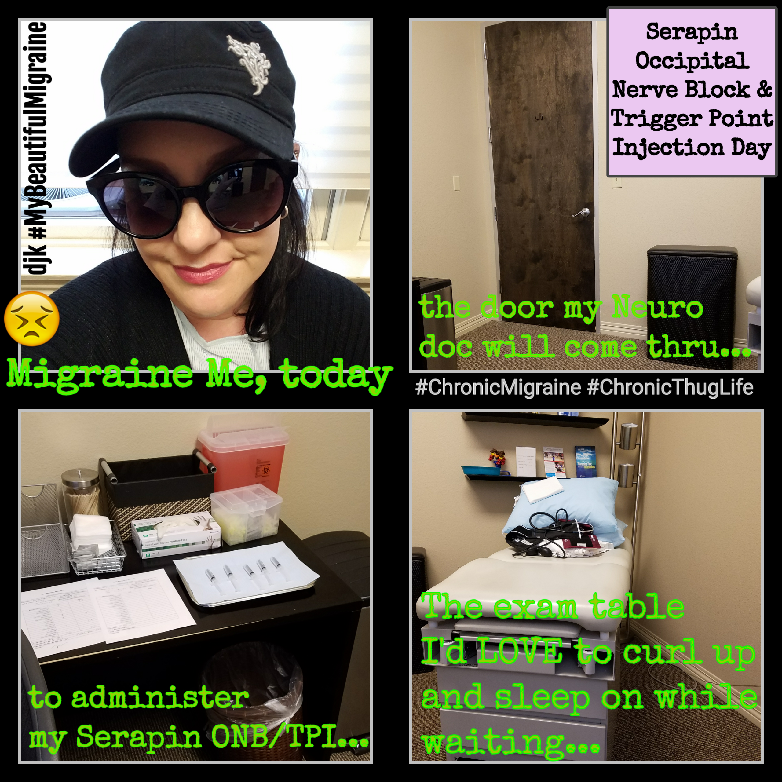 My head is hot. Needs ice. Rest. Hoping the occipital nerve blocks do not trigger more migraine. The weather has been brutal.