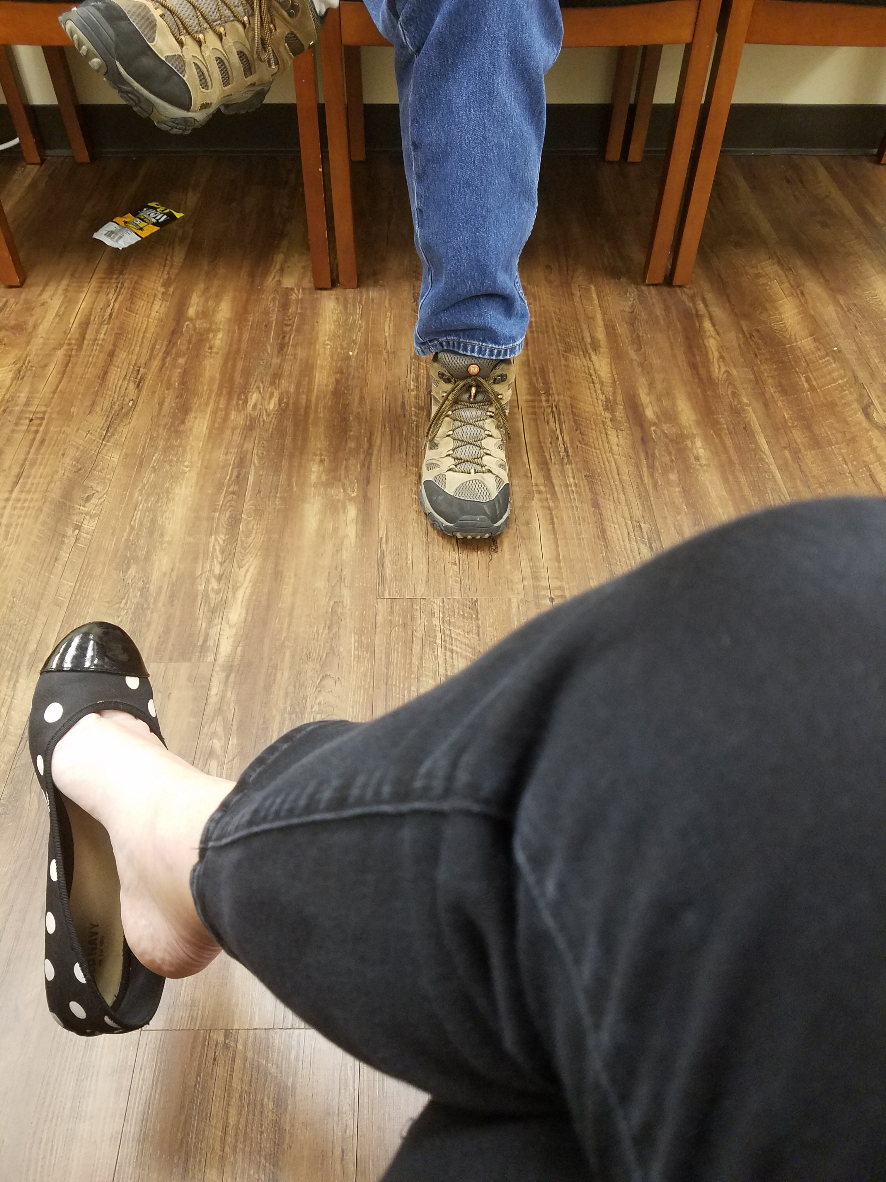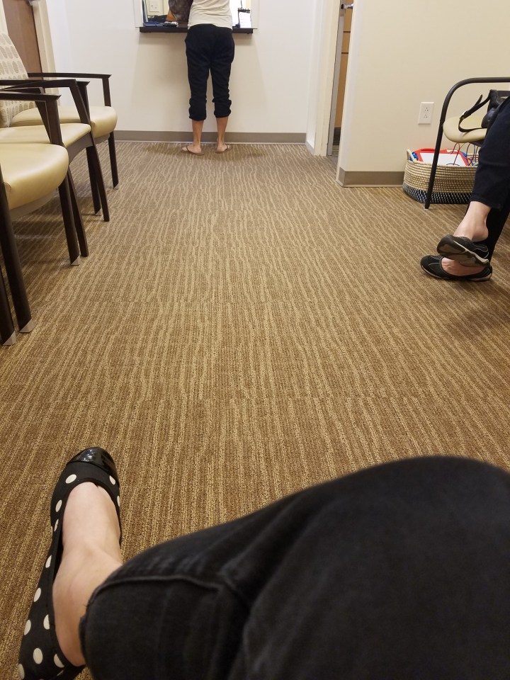 I finish up and am back in the car to get to Westlake for Lisa’s appt. My RA is getting angrier. Legs swol, hand joints tender, aching thighs, back, hips. I arrive in good time (rockstar patient 🌟).