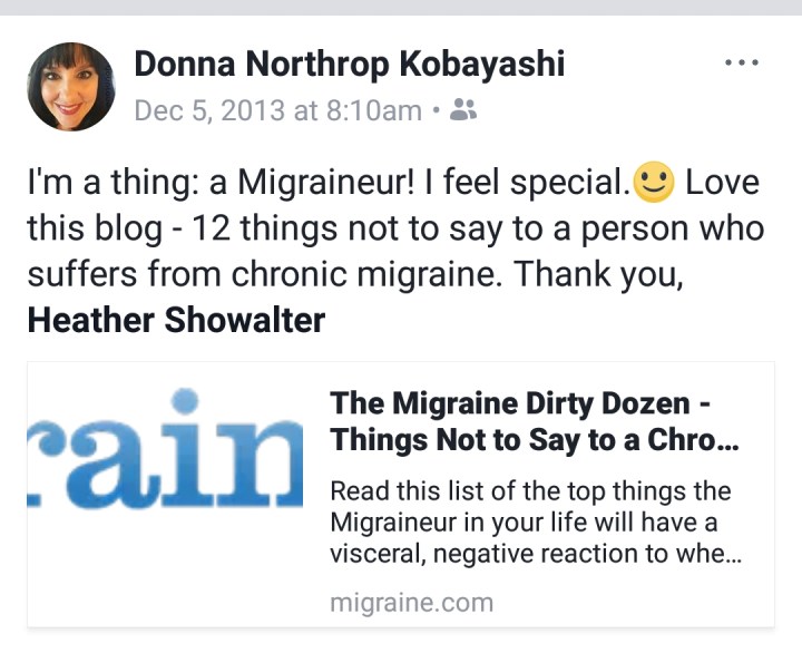 This day… 4 years ago… I discovered I was a “thing” and not a total Freak! I was slowly opening up and Speaking My Migraine. I was learning that I wasn’t all alone. My college friend Heather would take notice of my “honesty Facebook posts” (no doubt annoying to many!) and in the course of under a year, put me in contact with hundreds of people Just. Like. Me.