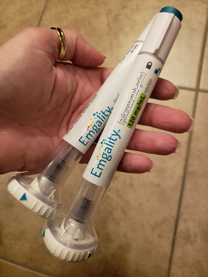 Did my Emgality loading dose tonight. Easy-to-use pen syringes… but HOLY MONKEYS the shots HURT compared to Aimovig!😭 I’m ready for migraine to stop cold turkey tomorrow once Emgality takes effect!👍