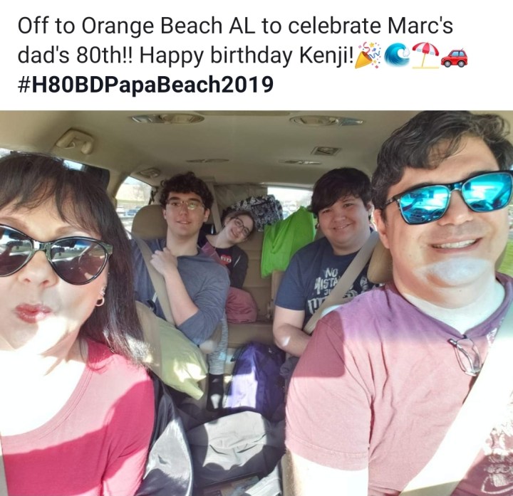 All smiles as our family assembles at Orange Beach for my FIL’s 80th bday! Reality is the last photo.