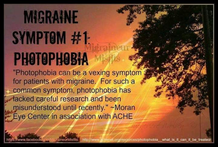 Photophobia or photo sensitivity is a huge battle…it’s not like: “Oh, hey, it’s bright.” it’s like: “Omg, it BURNS like fire; I’m going to die.”