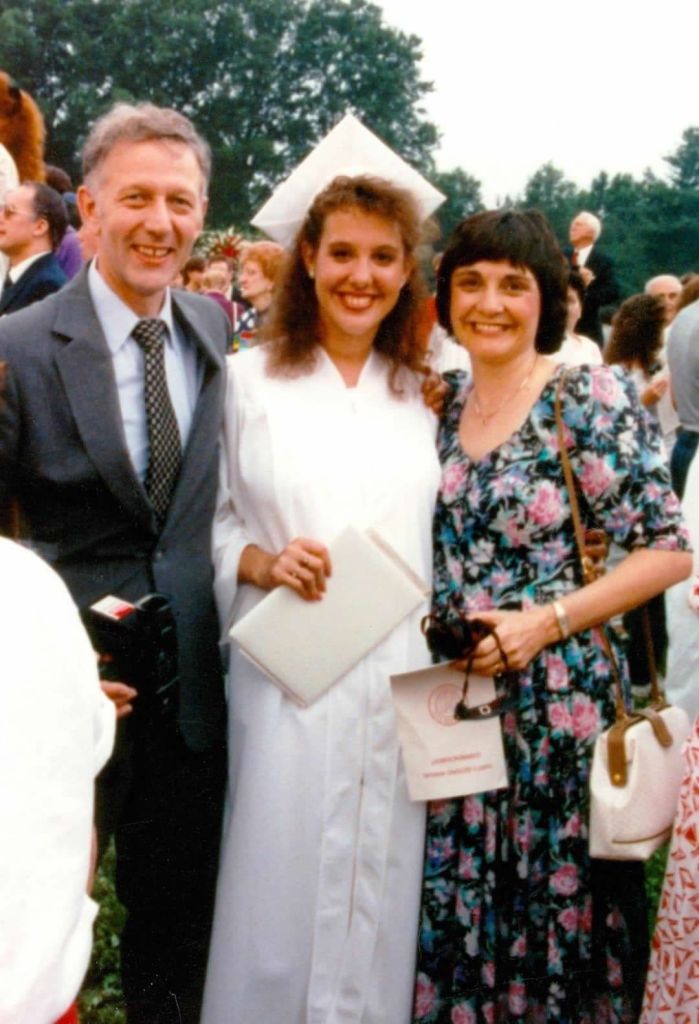 By senior year, between exercising, eating carrots, long nursing clinicals, and a couple of surgeries (tonsillectomy and appendectomy), I dropped weight again. By graduation and my wedding in 1994, I was around 125 lbs.