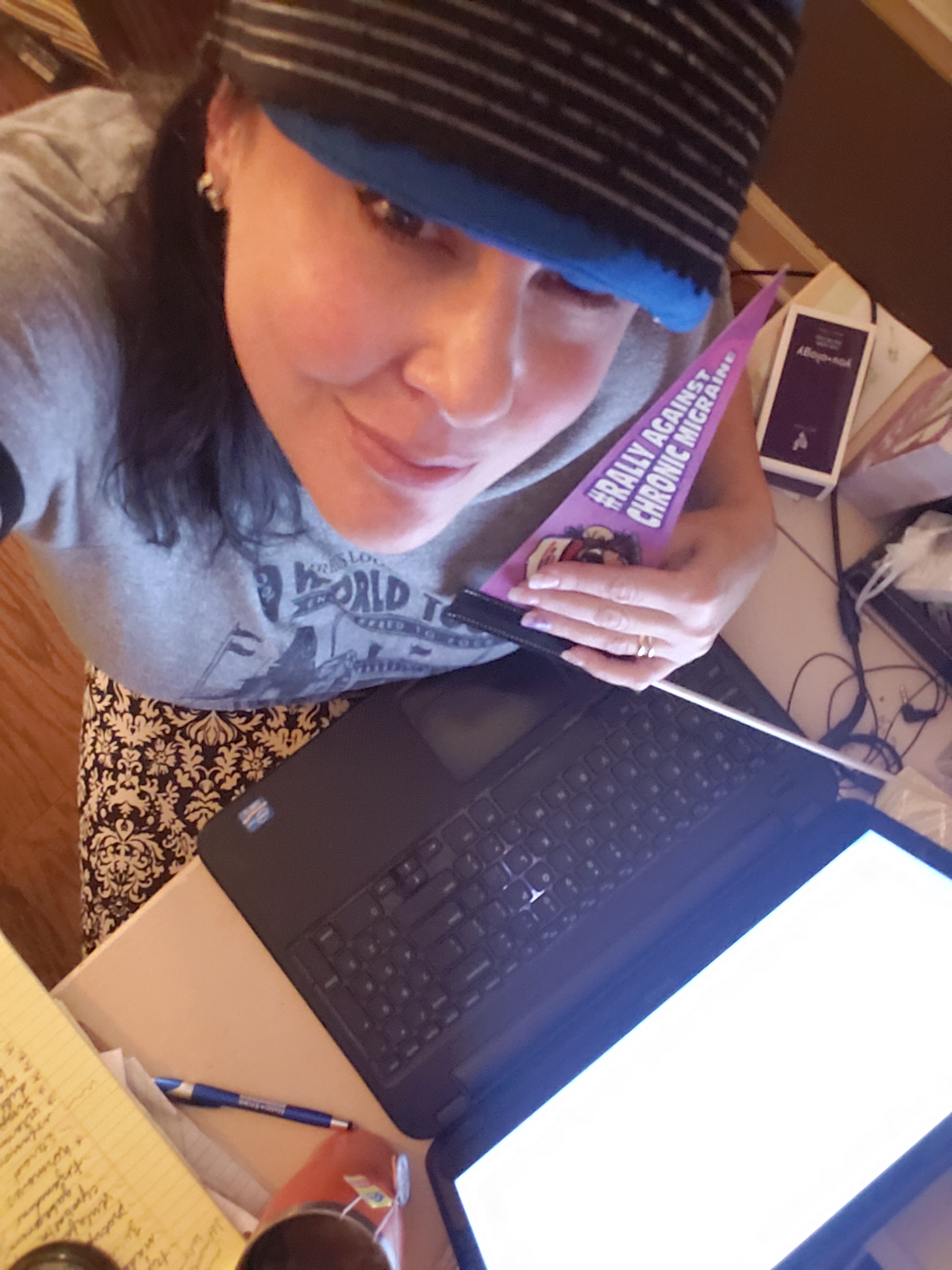 Through a quirky well-intentioned accident, someone on social media understood my circumstance and placed me in a Facebook support group. And one Saturday morning my life was saved as I awoke to find post after post in my feed from other Chronic Migraineurs. It took me weeks to understand that what I was seeing was true: there were hundreds of others living the same life as me. Hundreds. I wasn’t actually a “freak” and I certainly wasn’t alone! Since then, I’ve made leaps and bounds in my comprehension and educations… I’ve found my advocacy voice and I know how to self care. I’ve relearned words… like “resting” and “recovering” is not synonymous with the bad word “lazy,” for example.