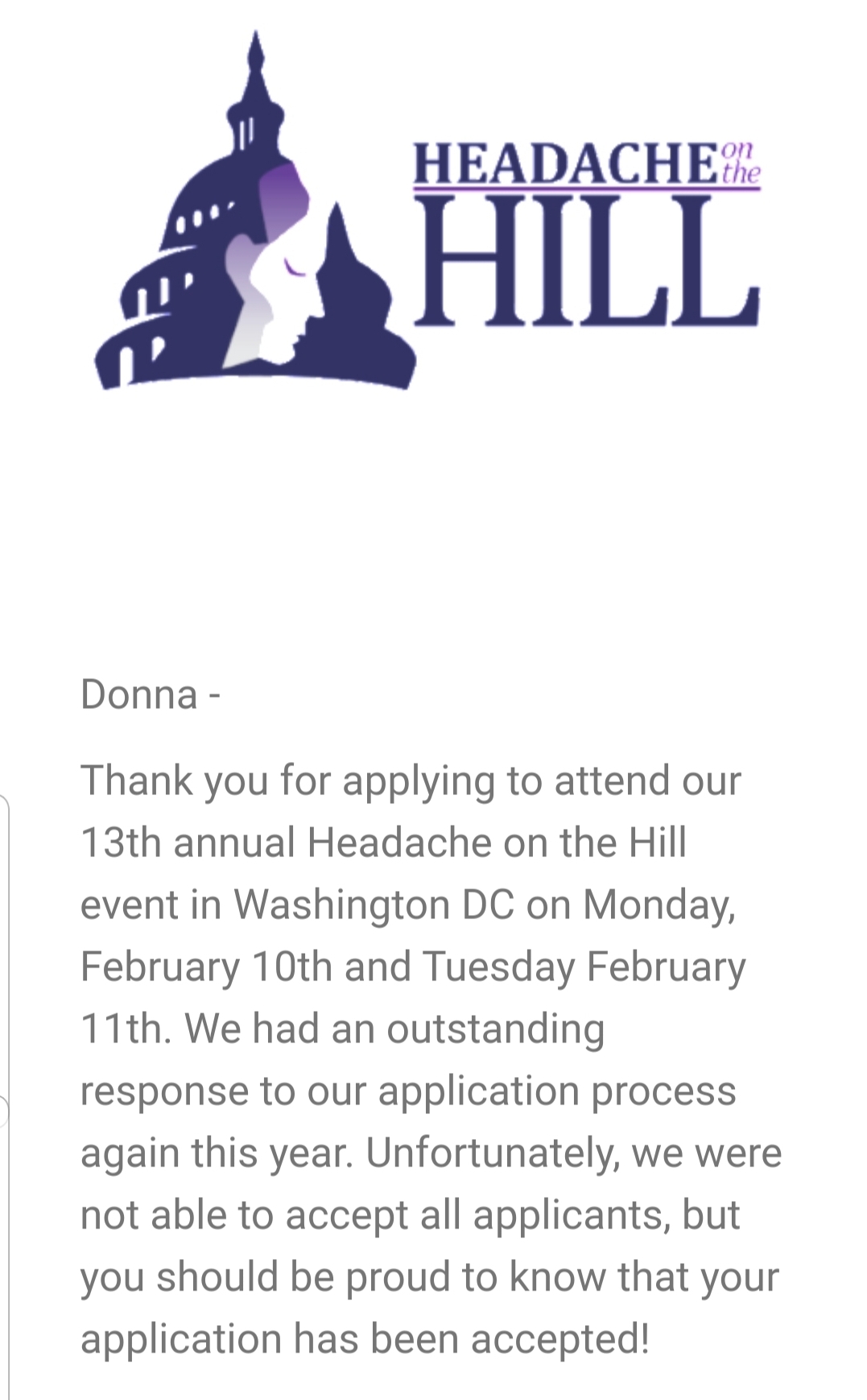 I’m really excited for the migraineurs who are selected and have the opportunity to attend… because I know what an AMAZING experience awaits them: education on SO many levels and aspects, sample treatments, community, validation, opportunity to try new therapies and learn about stigma and advocacy, and most of all – fellowship, understanding, acceptance and love. 💜❤💜